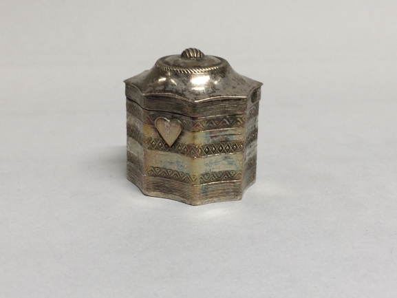 Achtkantig loddereindoosje met op de voorkant een opgesoldeerd hartje