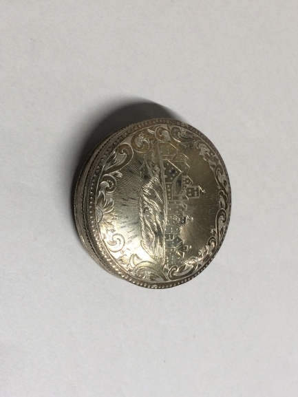 Pepermuntdoos met op het deksel een dorpsgezicht