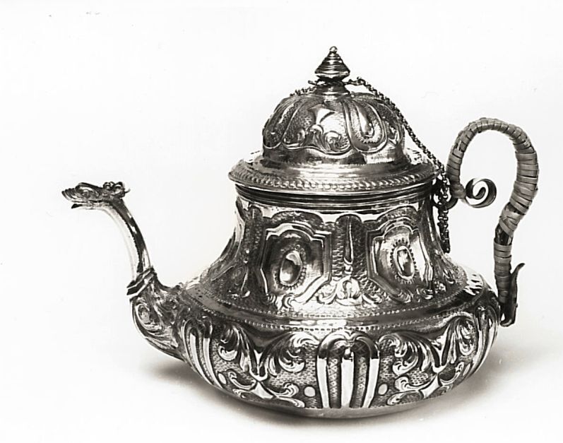 Afgedekte potten voor het laten trekken en serveren van thee, met tuit en handvat en soms met voetjes. Te onderscheiden van 'theeketels' die een hengsel als handvat en een brede, platte onderkant hebben en worden gebruikt om water in te verwarmen waar thee van wordt gezet. (AAT-Ned)