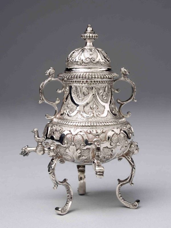 Aan het einde van de 17de eeuw ontwikkelde zich naast de koffiekan met tuit een nieuw type kan met een op de buik gemonteerd kraantje, de kraantjeskan. In dit praktische model kon koffie worden gezet en vervolgens direct in kopjes worden getapt. Behalve in zilver, messing, tin en gelakt blik werden kraantjeskannen ook wel uitgevoerd in ceramiek. (Rijksmuseum Amsterdam) https://data.cultureelerfgoed.nl/term/id/cht/ef294aea-a7fc-4d3b-97d6-1ade9bf2e586