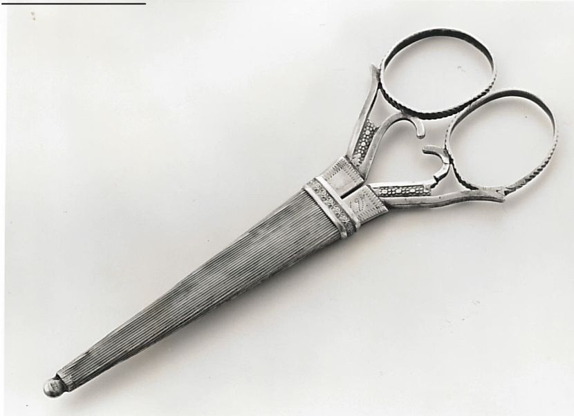 Ceremoniële schaar, mogelijk verguld en voorzien van religieuze voorstellingen. In vrouwenkloosters gebruikt bij de inkleding om een lok af te knippen, in mannenkloosters bij de kruinschering. (Religieus Erfgoedthesaurus) https://data.cultureelerfgoed.nl/term/id/cht/6d0a91a3-b717-4040-b93e-0a908f9d3c7b