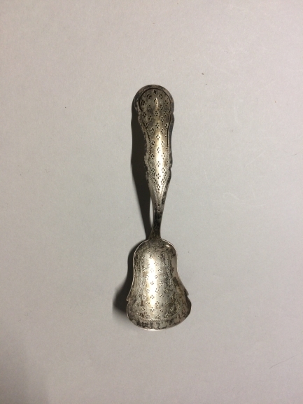 Suikerschepje met een platte gewelfde steel waarin gegraveerd ACJJ Driesen Schoonhoven 1870-....