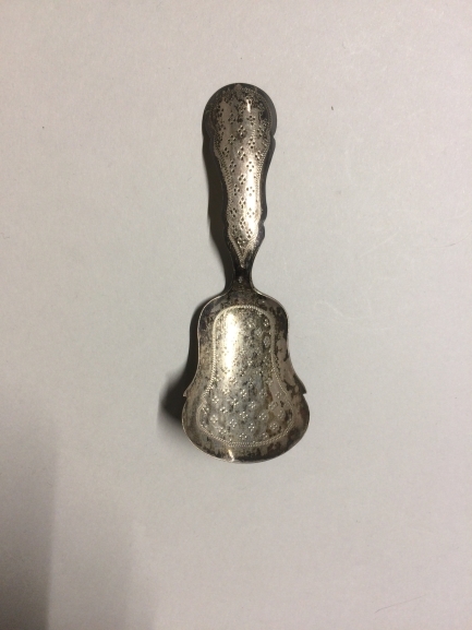 Suikerschepje met een platte gewelfde steel waarin gegraveerd ACJJ Driesen Schoonhoven 1870-....