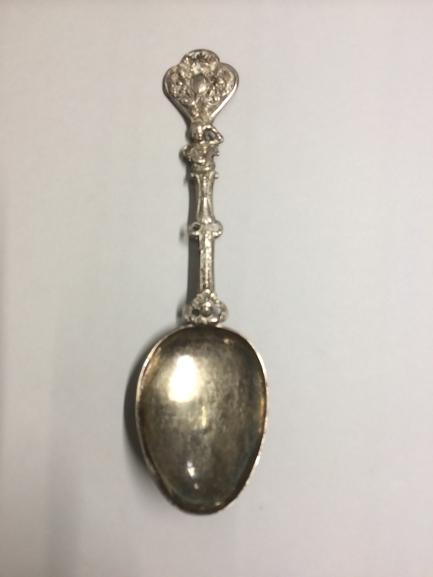 Lepel bekroond door een vrouwenfiguur ten halve lijve, waarboven een medaillon