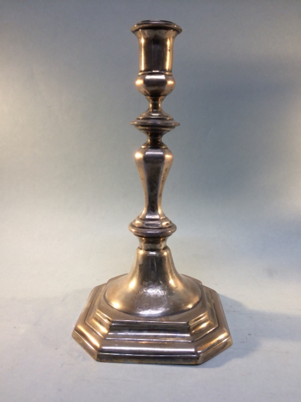 Een van twee zilveren kandelaars met wapen Cammingha