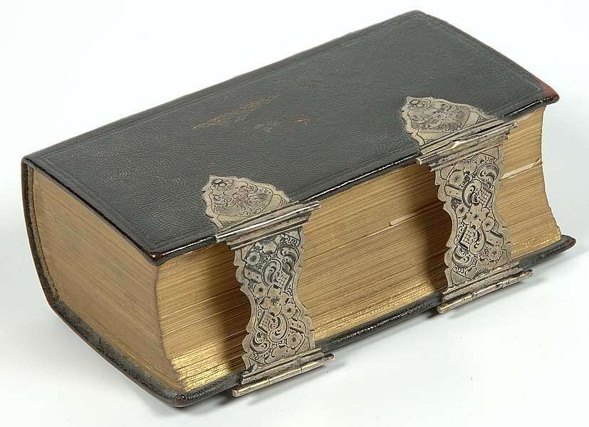 Het geheel van (edel)metalen, geornamenteerde bescherm- en/of versierstukken op kostbare boeken. De delen (kunnen) zijn: de hoeken, een centraal middendeel, klamphouders en klampen en een houder met ring middenboven voor een draag- of vergrendelingsketting.