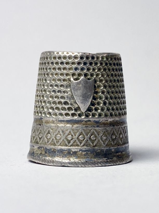Open zilveren vingerhoedje met onderaan een ruitrandje