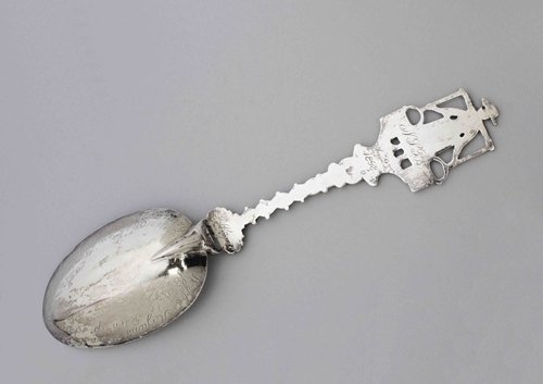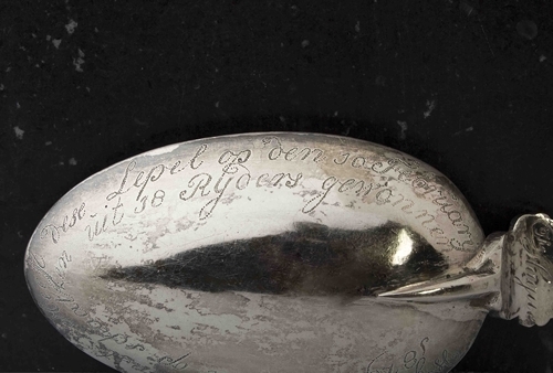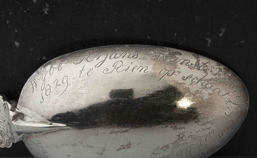 Zilveren lepel gewonnen door Wijbe Arjans Kunst Heeft op 10 februari 1829 te Rien op schaatsen uit 18 rijders