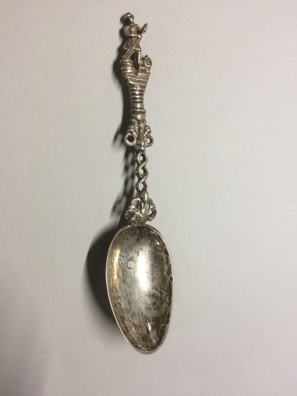 Zilveren lepel, bekroond met de figuur van een brouwer