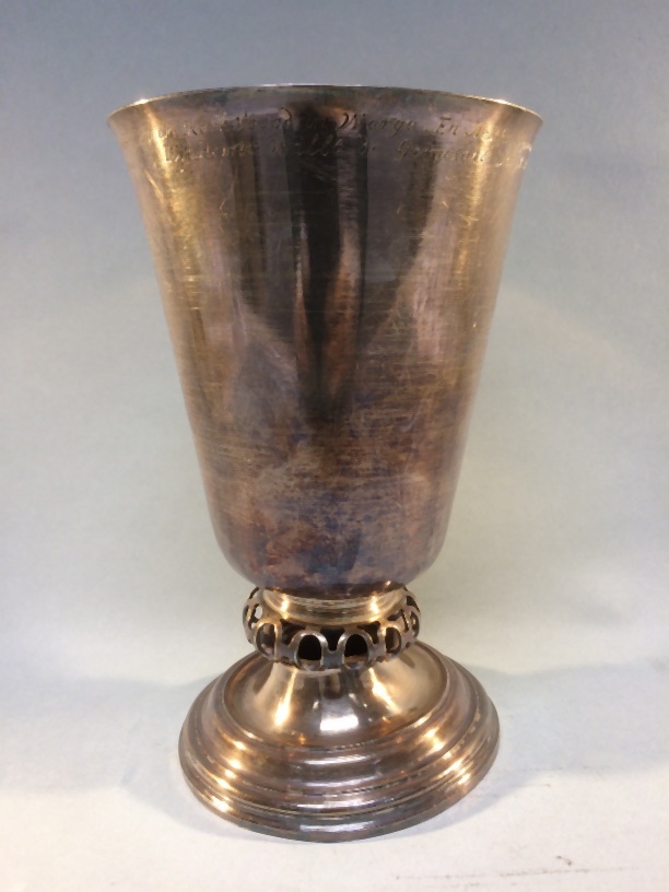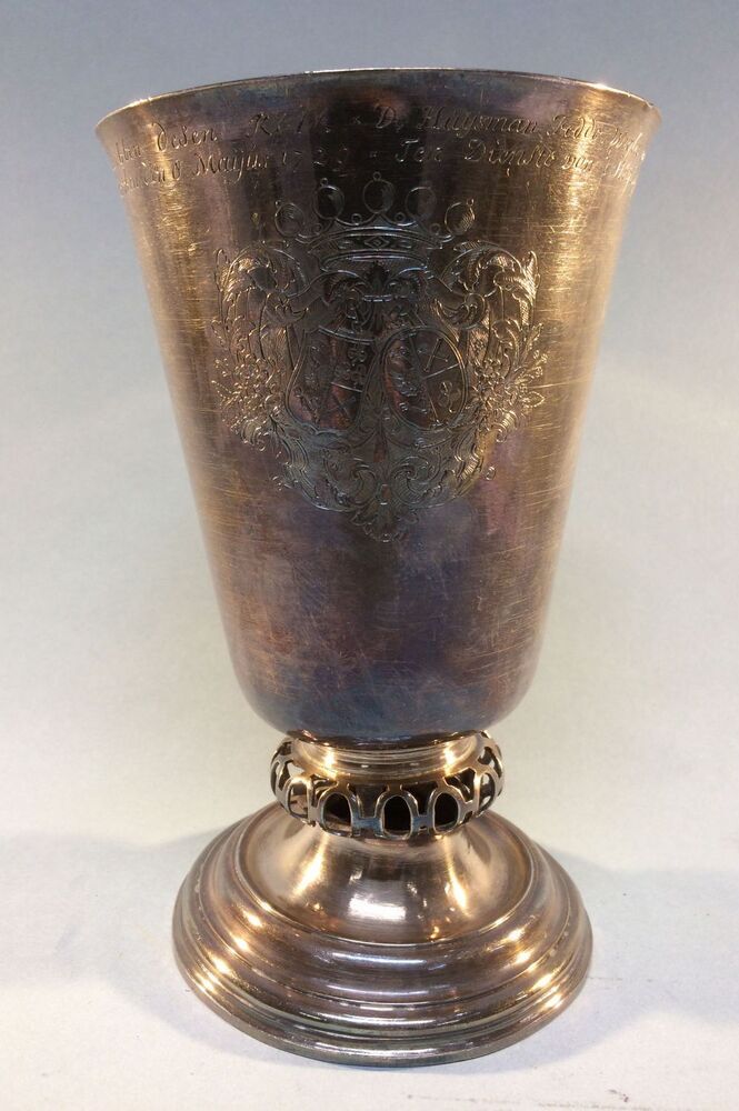 Kleine wijnbeker die wordt uitgedeeld aan iedere deelnemer aan het heilig avondmaal. De wijn wordt in het bekertje geschonken met de avondmaalskan. https://data.cultureelerfgoed.nl/term/id/cht/cd64ed8c-26c3-4312-b203-f2f5d81a6220