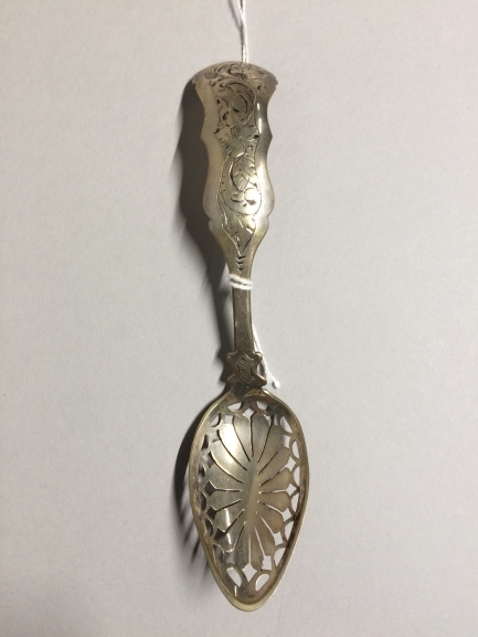 Natfruitlepel met gebogen steel met accoladevormoge randen