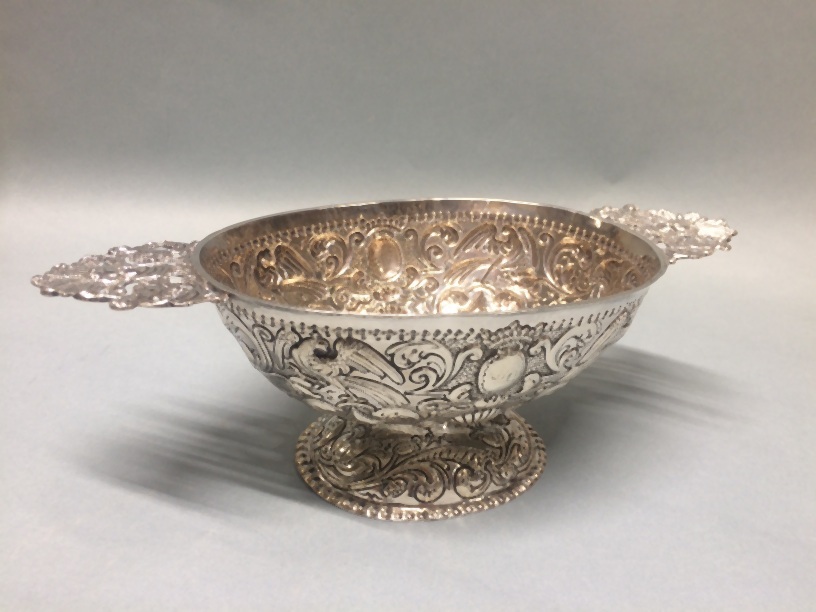 Twee-orig, van oorsprong zeventiende-eeuws zilveren kommetje waaruit brandewijn werd gedronken, maar in kerken wel wordt/werd gebruikt als collecteschaaltje. https://data.cultureelerfgoed.nl/term/id/cht/5d4501c2-bed0-47b0-8c7b-c8973d91084c