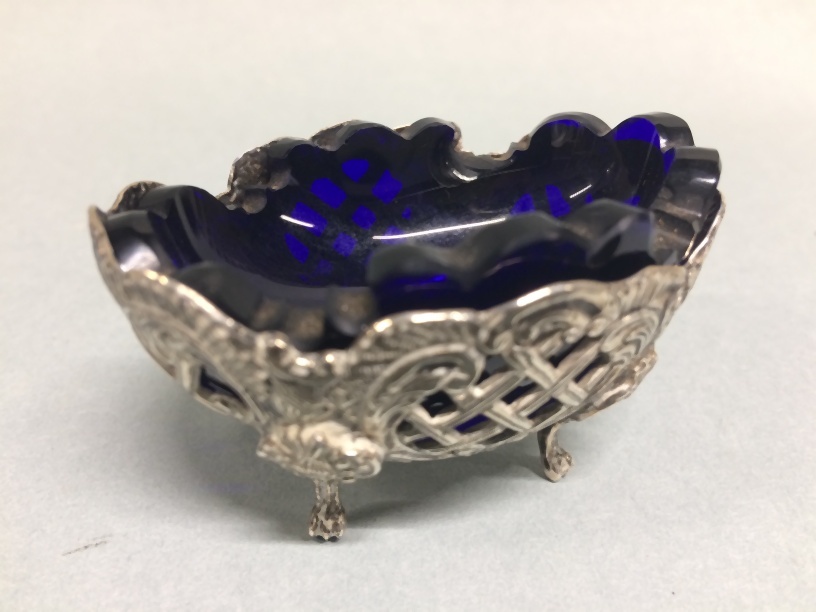 Een van twee zoutvaten met glazen binnenbakjes in Lodewijk XV-stijl