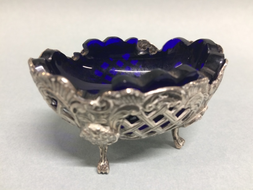 Een van twee zoutvaten met glazen binnenbakjes in Lodewijk XV-stijl