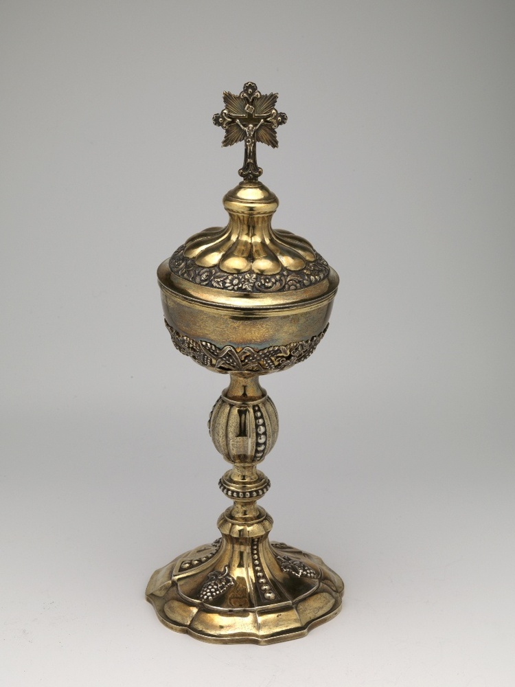Ciborie op voet met door een crucifix bekroond deksel