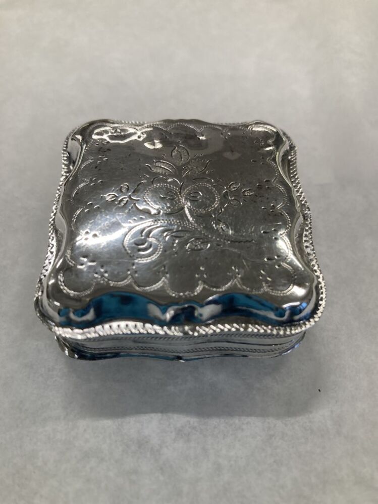 Pepermuntdoosje waarvan deksel is versierd met een gestileerde plantvorm