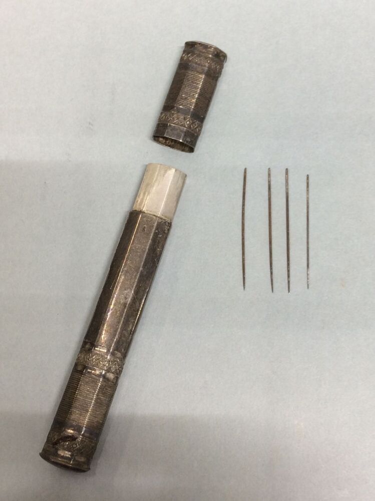 Langwerpige koker of bus om naalden in te bewaren. (ABR) https://data.cultureelerfgoed.nl/term/id/cht/42612500-385a-4753-ac83-ba412334f512