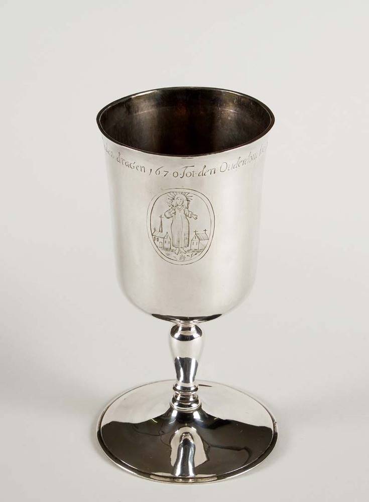 Kleine wijnbeker die wordt uitgedeeld aan iedere deelnemer aan het heilig avondmaal. De wijn wordt in het bekertje geschonken met de avondmaalskan. https://data.cultureelerfgoed.nl/term/id/cht/cd64ed8c-26c3-4312-b203-f2f5d81a6220