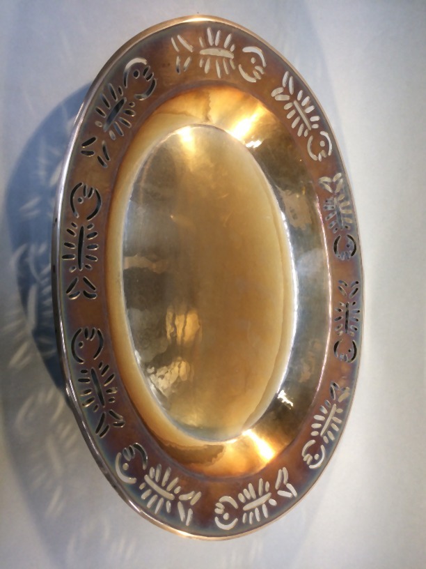 Ovale visschaal met in de rand uitgezaagde vissen