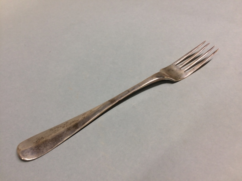 Vork als deel van couvert met achter op de steel gegraveerd: MHW en M.H.d J