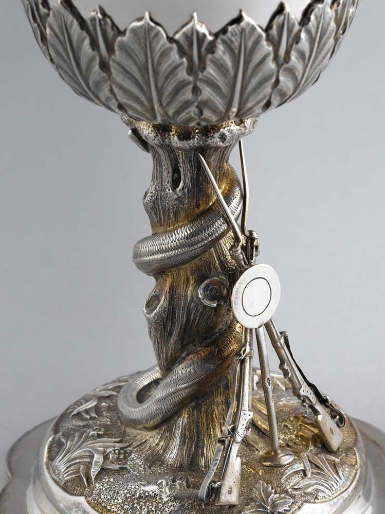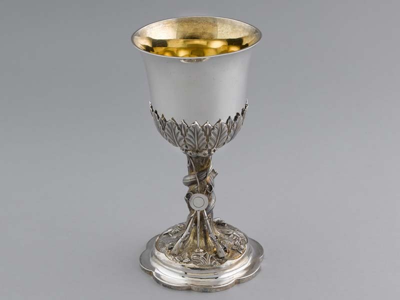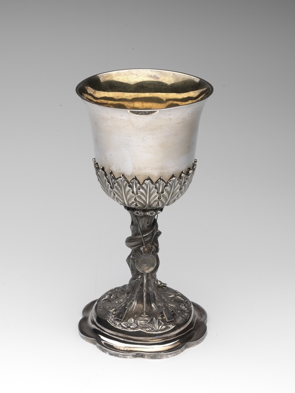 Kelk of bokaal met contracuppa in de vorm van bladeren op een stam in de vorm van een boomstam