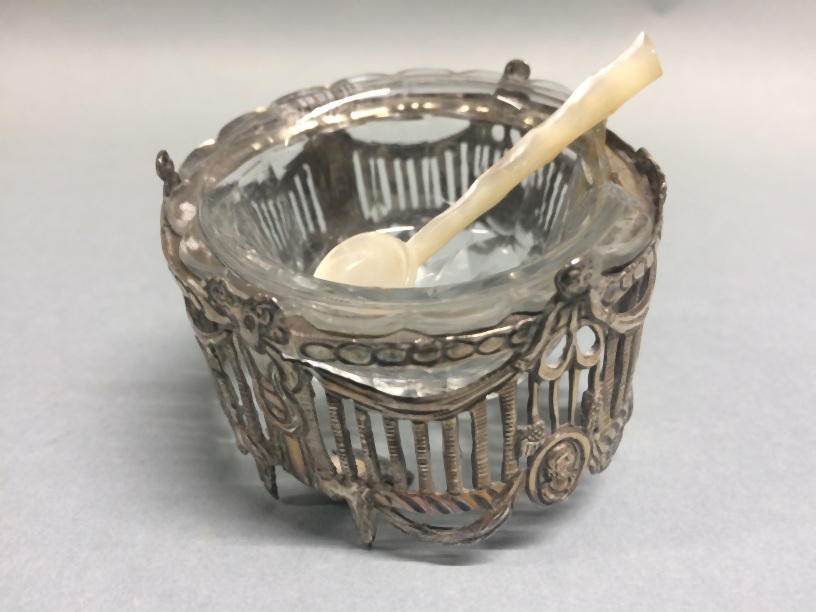 Kleine, lage, open vaten die worden gebruikt voor zout aan tafel. Worden gemaakt in een verscheidenheid aan vormen en kunnen een platte onderkant hebben of op pootjes staan of op een voet met een steel. Gebruik 'standing salts' voor grote vaten voor zout. (AAT)