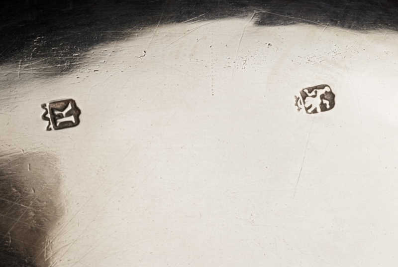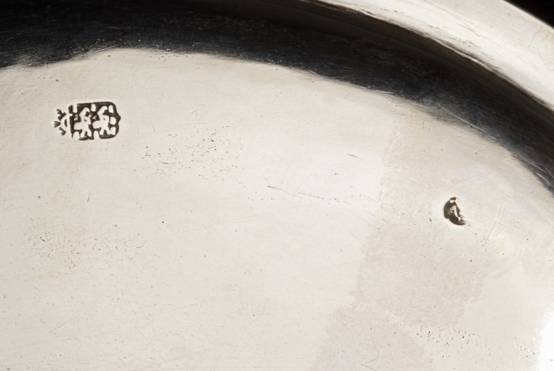 Ovalen zilveren schaaltje met de tekst "Aan Mr. W. A. van Sloterdijck 1895"