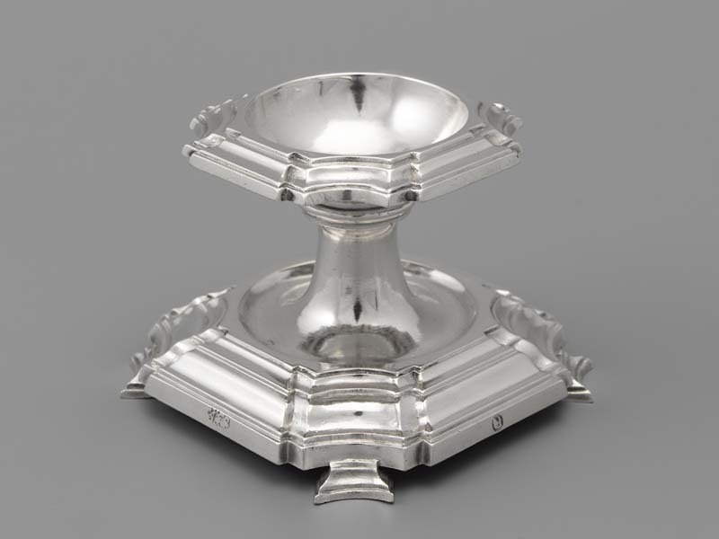 Kleine, lage, open vaten die worden gebruikt voor zout aan tafel. Worden gemaakt in een verscheidenheid aan vormen en kunnen een platte onderkant hebben of op pootjes staan of op een voet met een steel. Gebruik 'standing salts' voor grote vaten voor zout. (AAT)