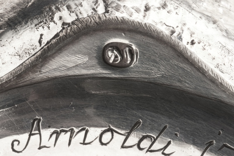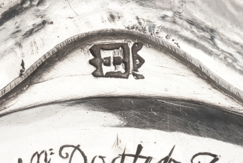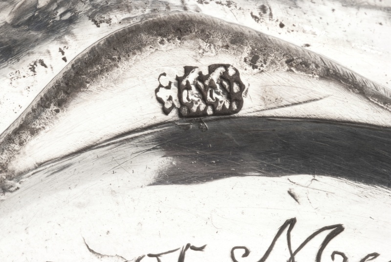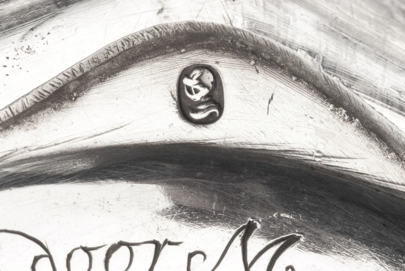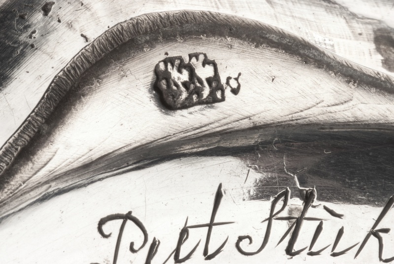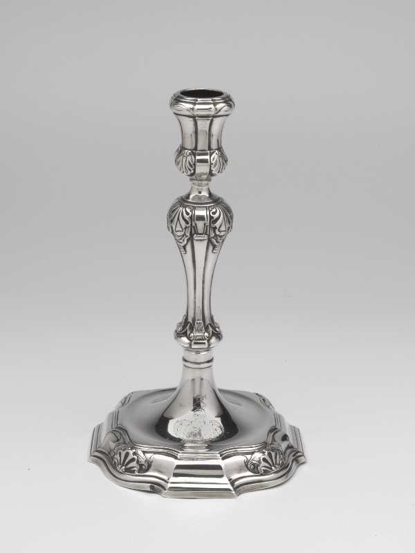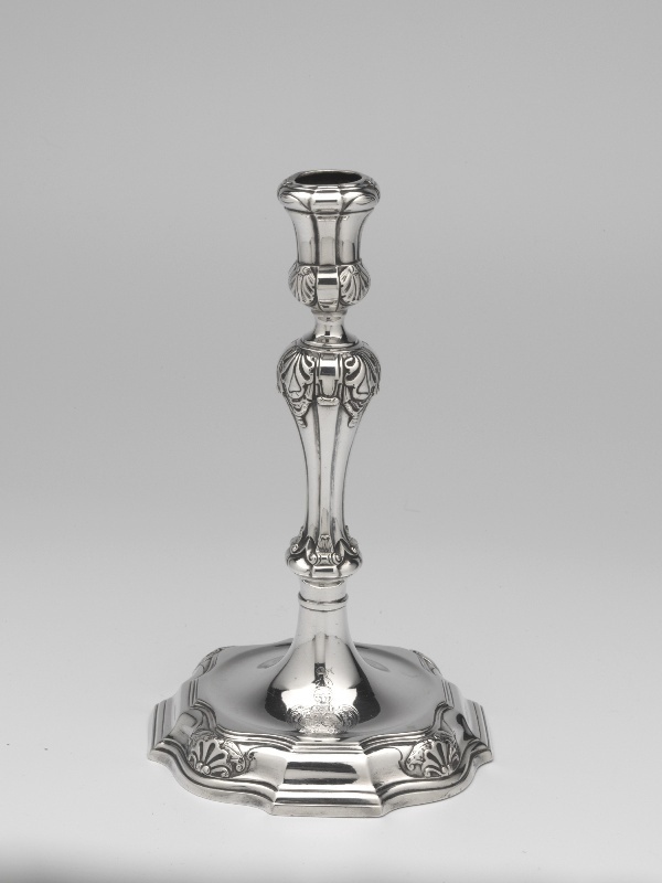 Een van twee zilveren kandelaars van Berber Arnoldi