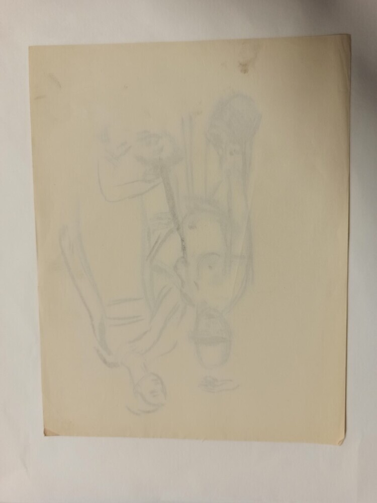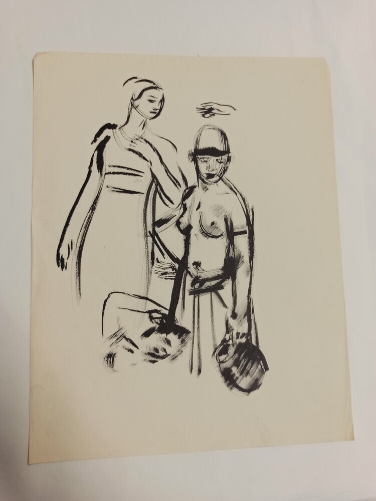 Op het papier zijn drie vrouwen afgebeeld. De linker vrouw heeft een jurk aan en draagt haar haar omhoog. De rechter vrouw heeft ontblote borsten. Ze draagt een kruik in haar hand. Onderaan is het silhouet van een vrouw te herkennen die haar hand in haar nek legt.