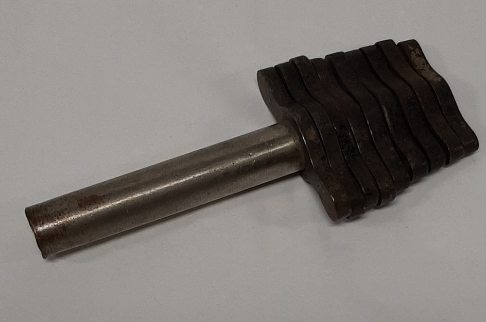 Uitschuifbare cilinders met een metalen plaatje op het uiteinde. Er zijn negen stukken die in elkaar schuiven