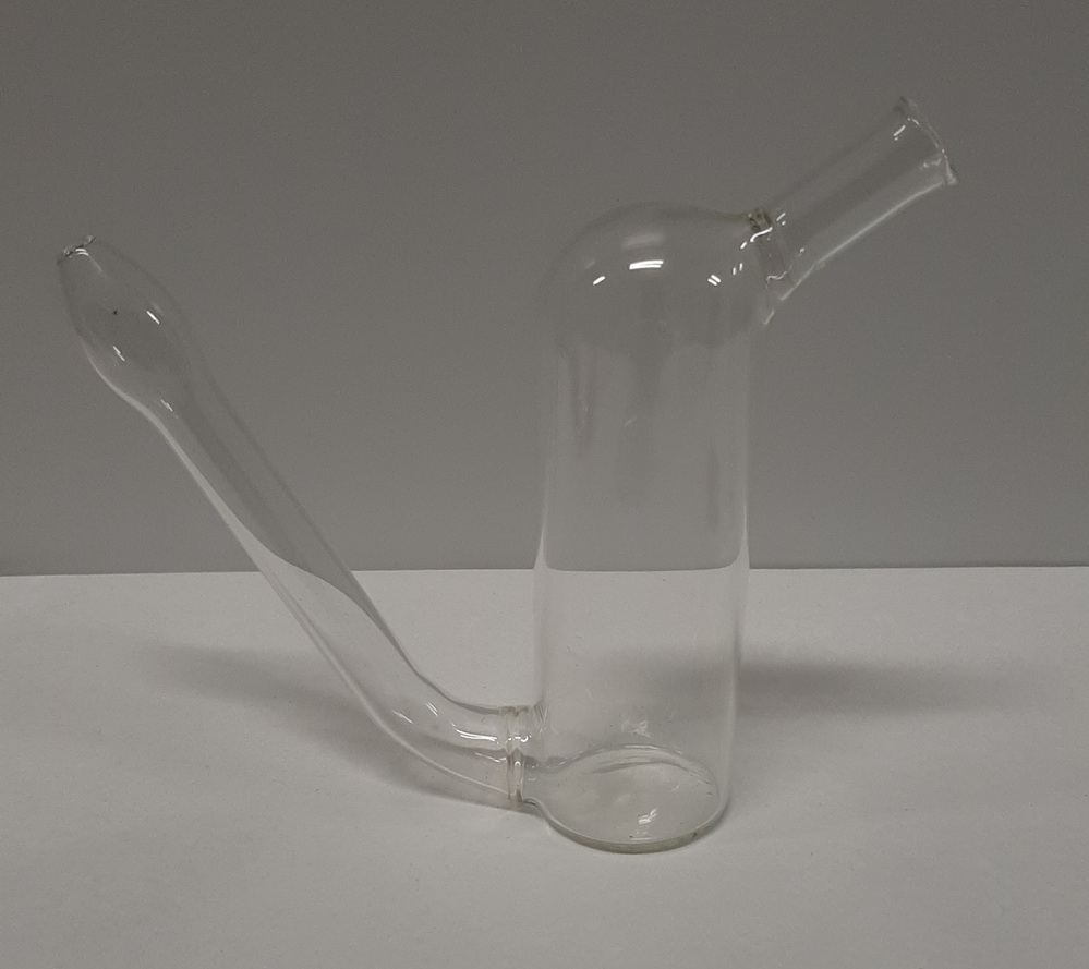 Deze neusdouche van kleurloos glas wordt gebruikt voor het reinigen van de neusholten met een natuurlijke spoeling van water en zout
