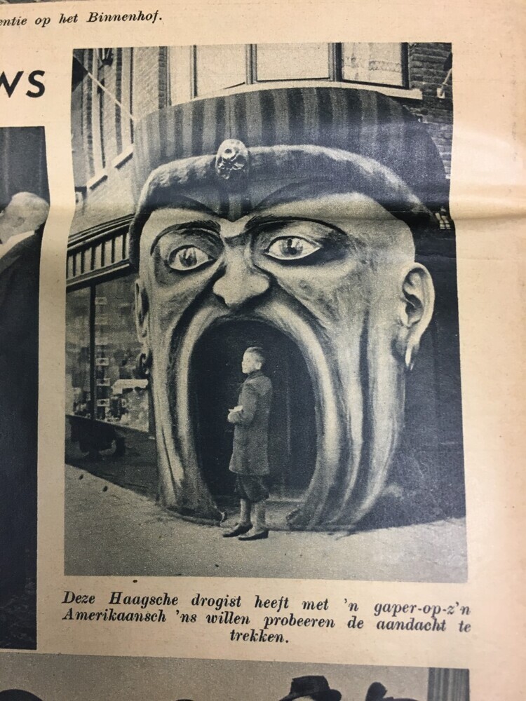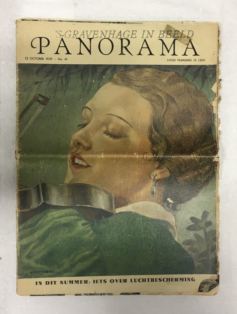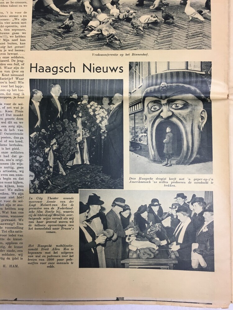 Tijdschrift Panorama 's-Gravenhage in beeld d.d. 12 october 1939 - No. 41 met op pagina 32 in "Haagsch Nieuws" een berichtje over de entree van drogisterij Nettesheim uitgedost als gaper.