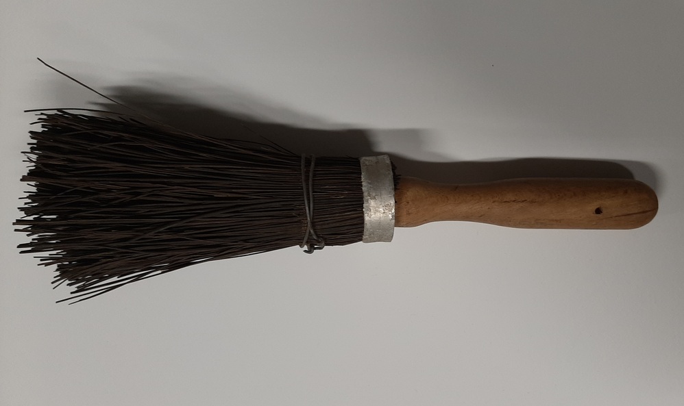Dit borsteltje is gemaakt van een bundel twijgjes en heeft een kort handvat