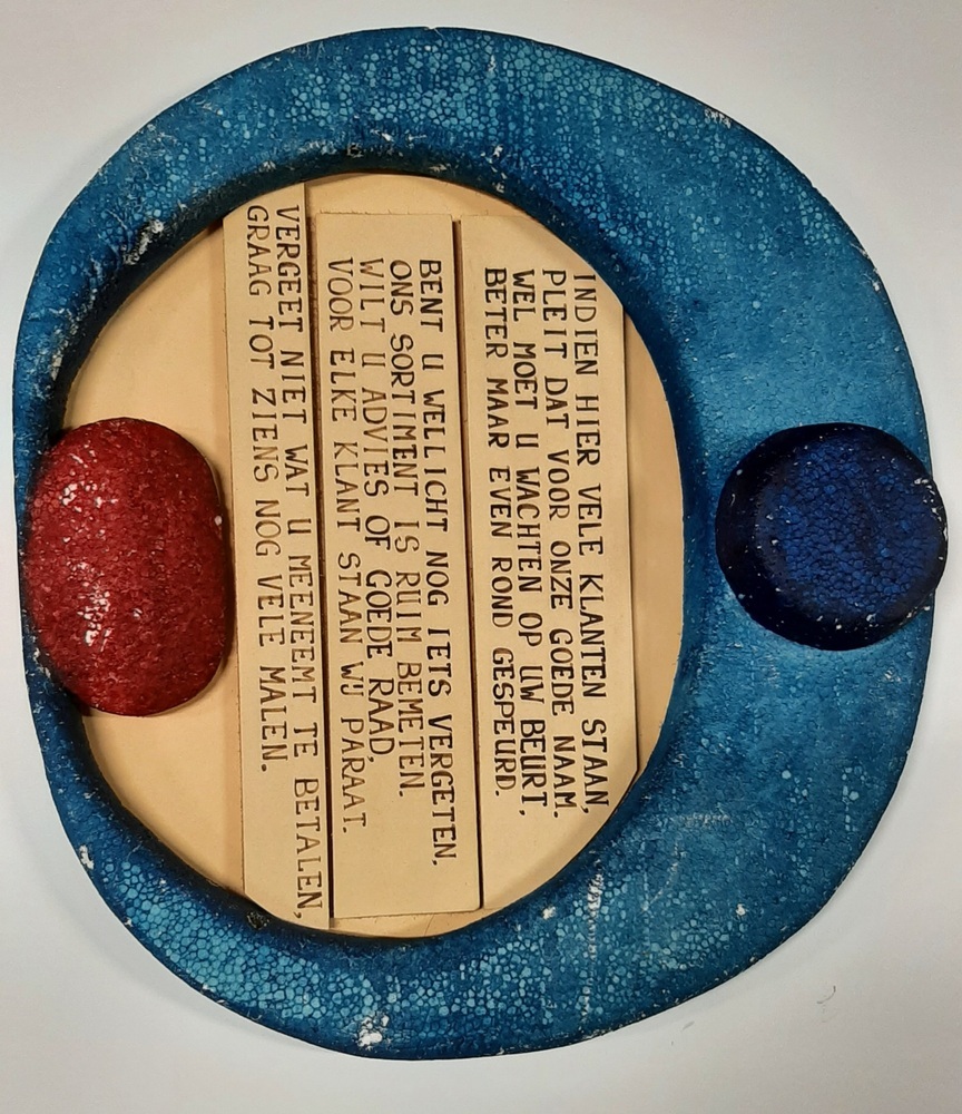 Dit zelfgemaakte bord hing in drogisterij Nettesheim en geeft op een ludieke manier informatie aan de klanten