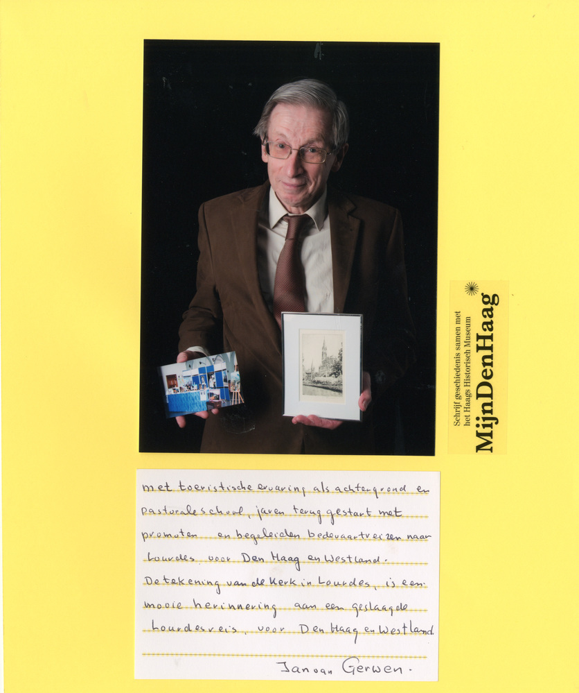 Dit verhaal maakt onderdeel uit van het project MijnDenHaag* Topstukken, waarbij Hagenaars gevraagd wordt naar hun eigen persoonlijke topstuk. 'Met toeristische ervaring als achtergrond en pastorale school, jaren terug gestart met promoten en begeleiden van bedevaartreizen naar Lourdes voor Den Haag en Westland. De tekening van de kerk in Lourdes, is een mooie herinnering aan ...