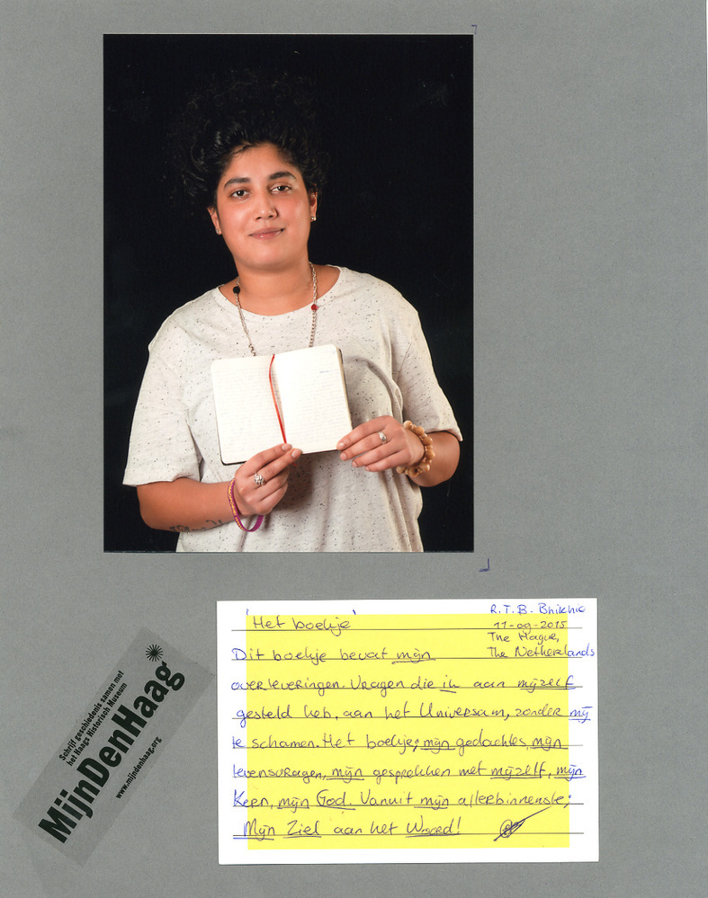 Dit verhaal maakt onderdeel uit van het project MijnDenHaag* Topstukken, waarbij Hagenaars gevraagd wordt naar hun eigen persoonlijke topstuk. 'Rubaina T.B. Bhikhie 'Het boekje' Dit boekje bevat mijn overleveringen. Vragen die ik aan mijzelf gesteld heb, aan het Universum, zonder mij te schamen. Het boekje; mijn gedachtes, mijn levensvragen, mijn gesprekken met mijzelf, mijn Kern, ...