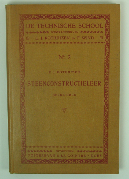 Boek, getiteld: 'Steenconstructieleer', geschreven door E.J. Rothuizen. Boek met bruin/beige kaft en op voorkaft en rug voorzien van opschrift in rode letters. Boek gebruikt door Servaas Middelhoek (1896-1966).
