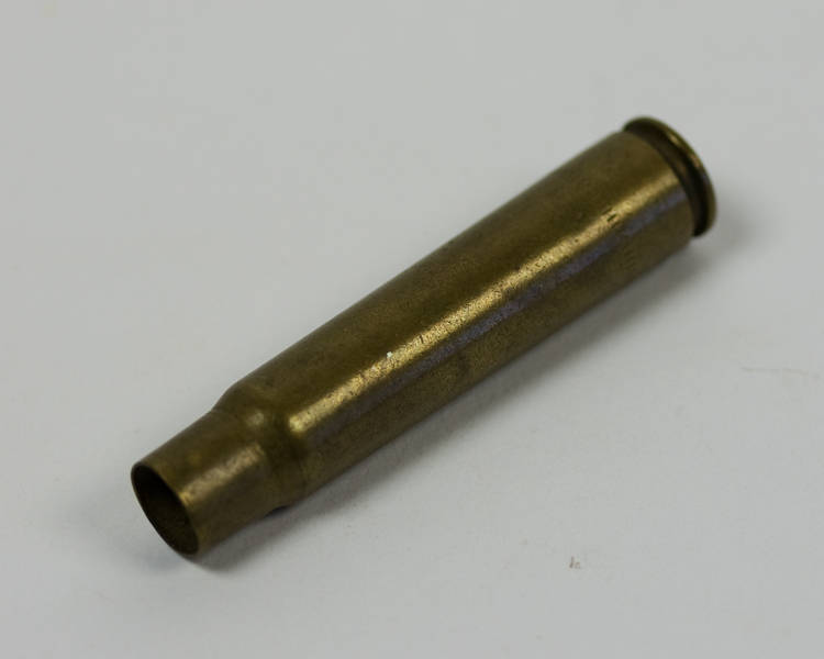 Koperen huls, aan één uiteinde een rand met arceringen.