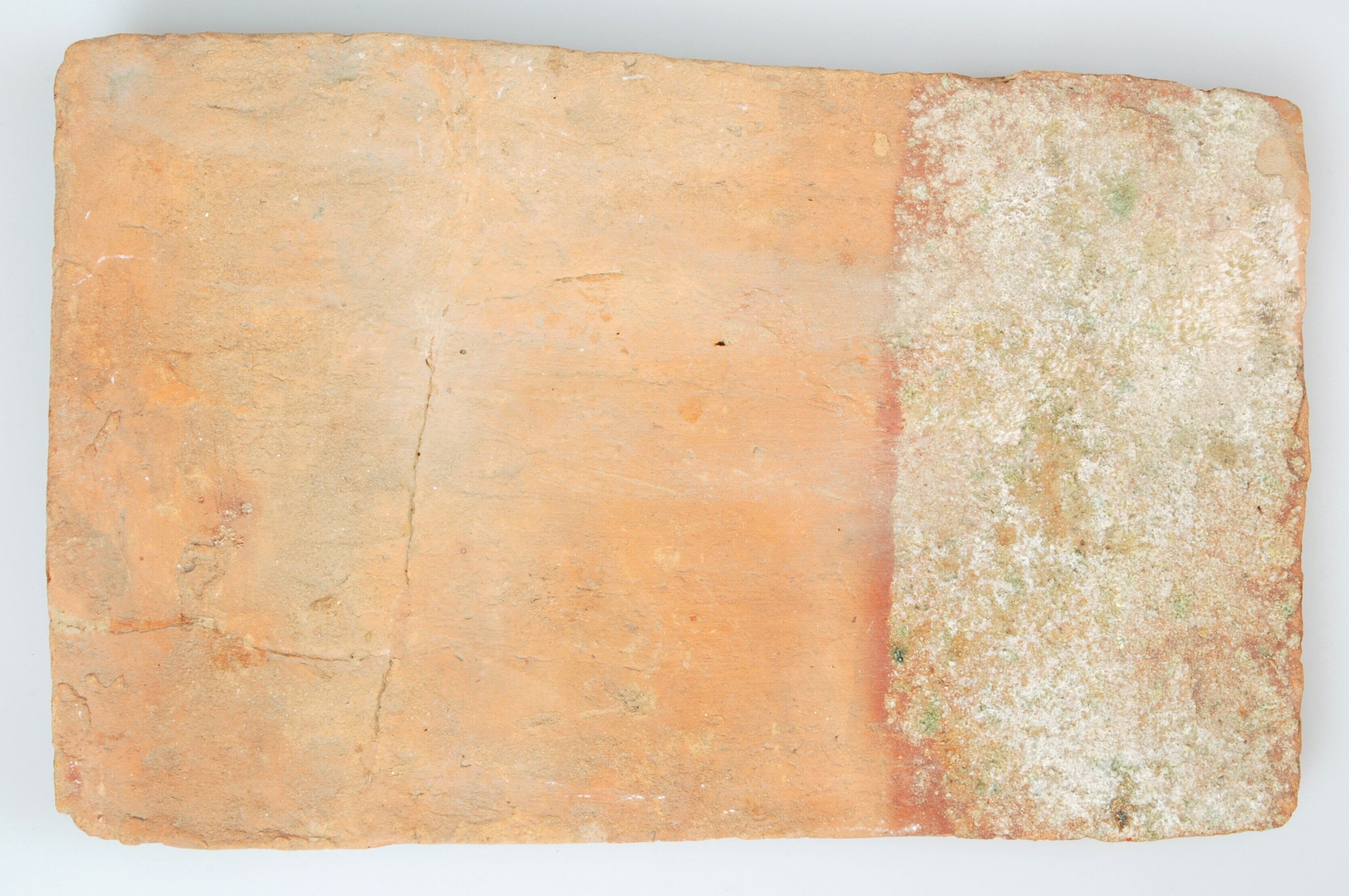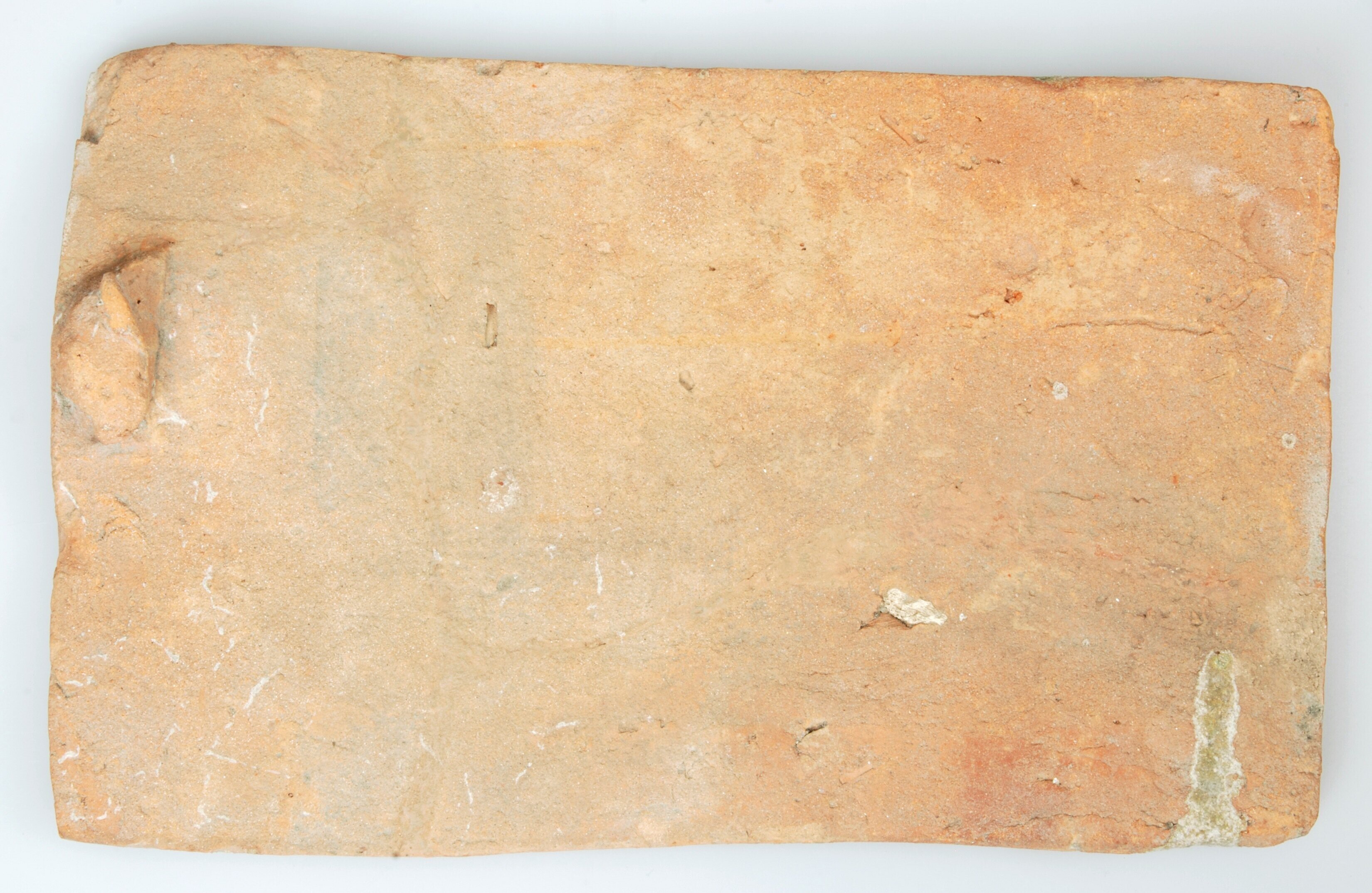 Dakpan; roodbakkend; ongeglazuurd; rechthoekig met aan de achterzijde een uitstulping