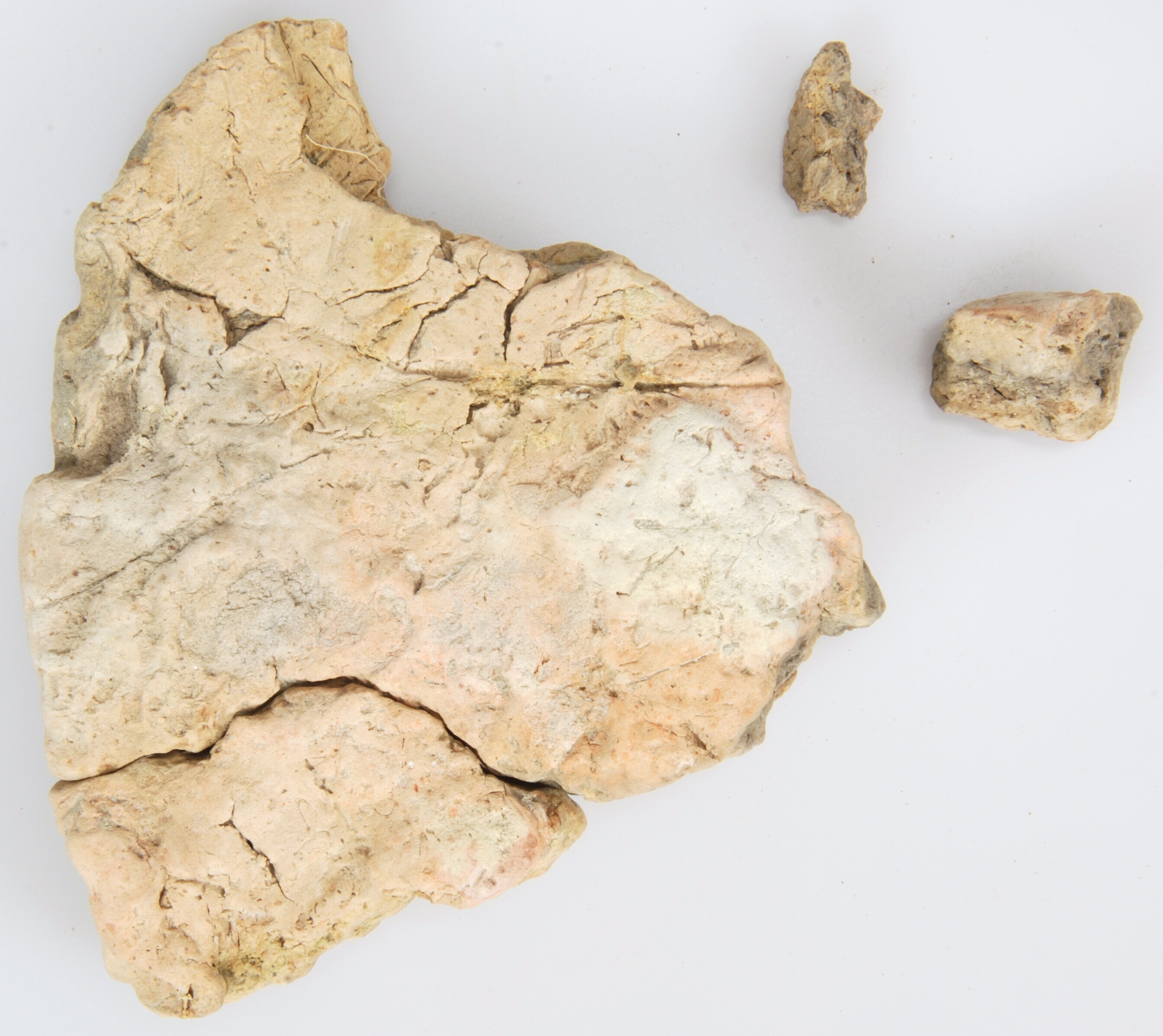 Bakplaat; handgevormd aardewerk; fragment bakplaat (circa 1/6 deel); zacht beige/bruinachtig baksel; vondstdatum: 18-6-1998