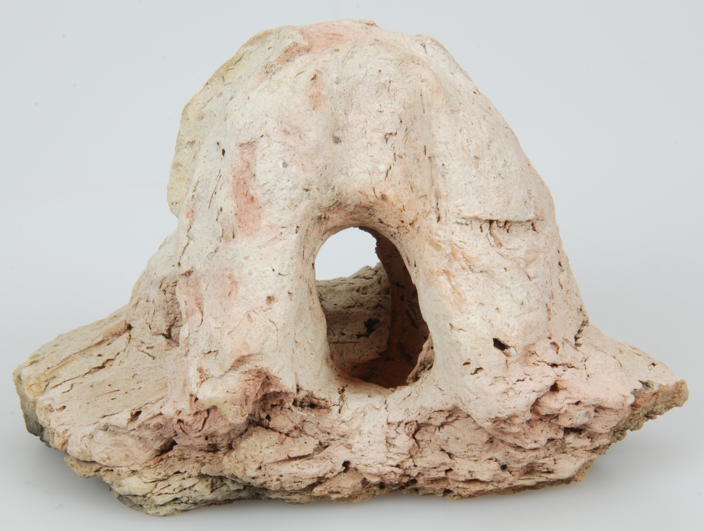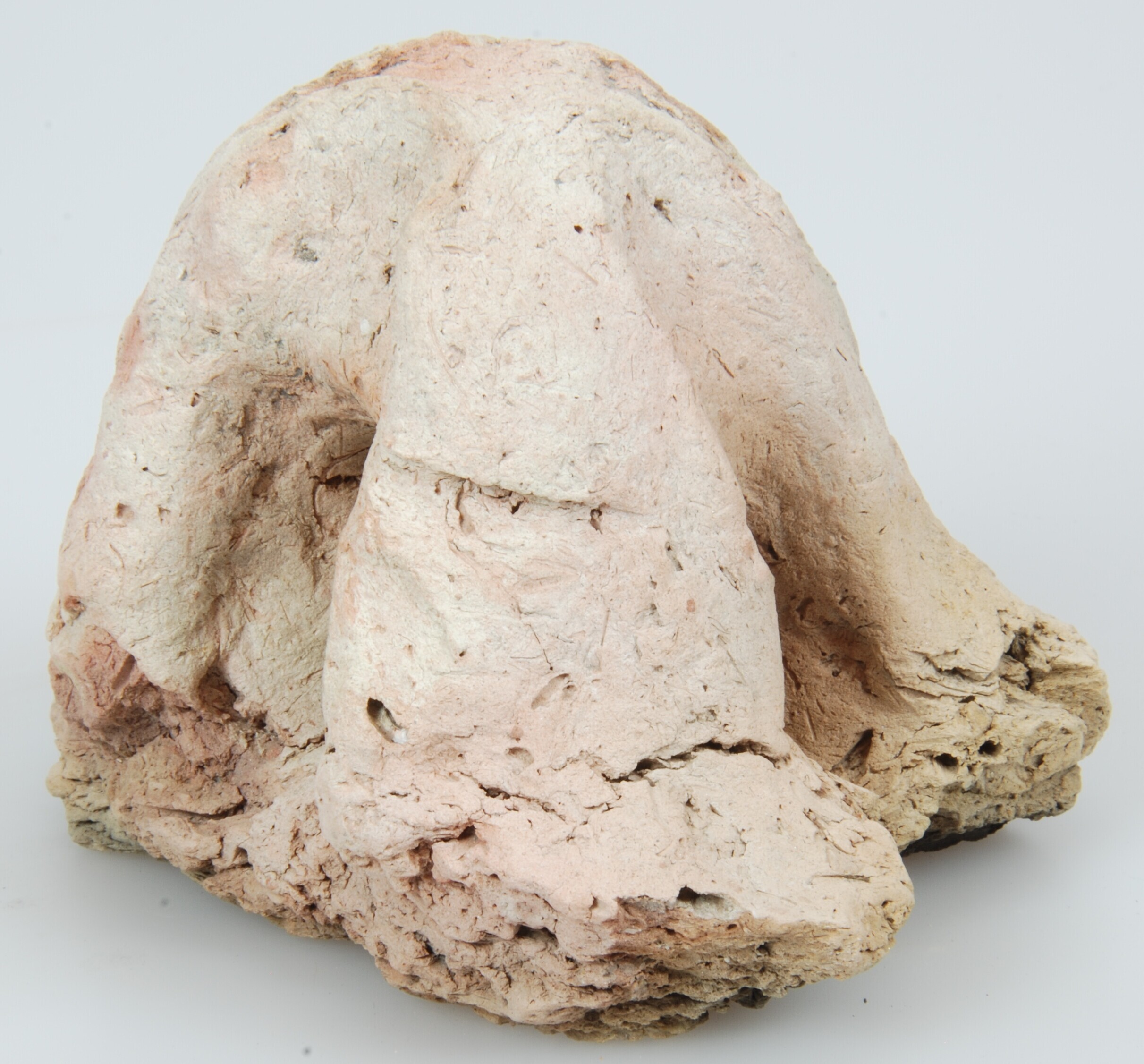 Knop vuurbok; handgevormd aardewerk; stolpvormig met vier uitgespaarde handgrepen; beroet aan de onderzijde; vondstdatum: 6-9-2000