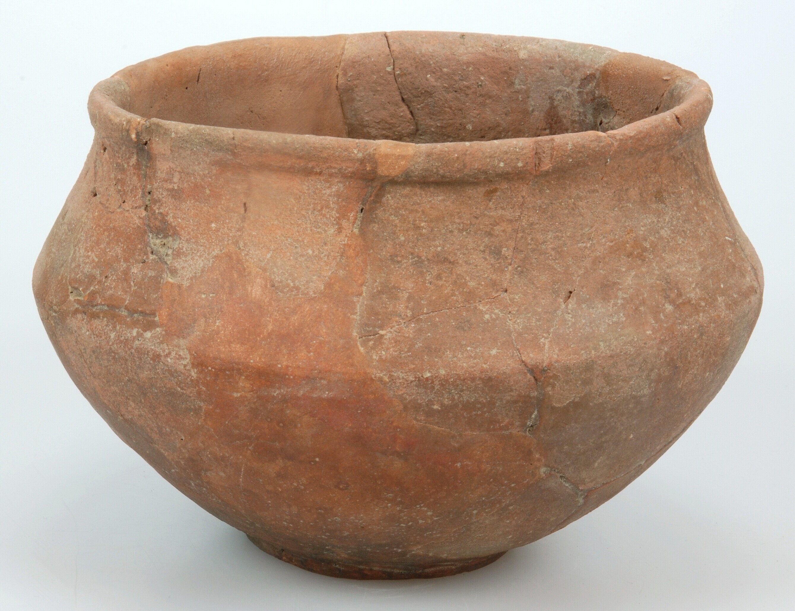 Pot; dubbelconisch met opstaande, brede rand; standring; steengruis magering