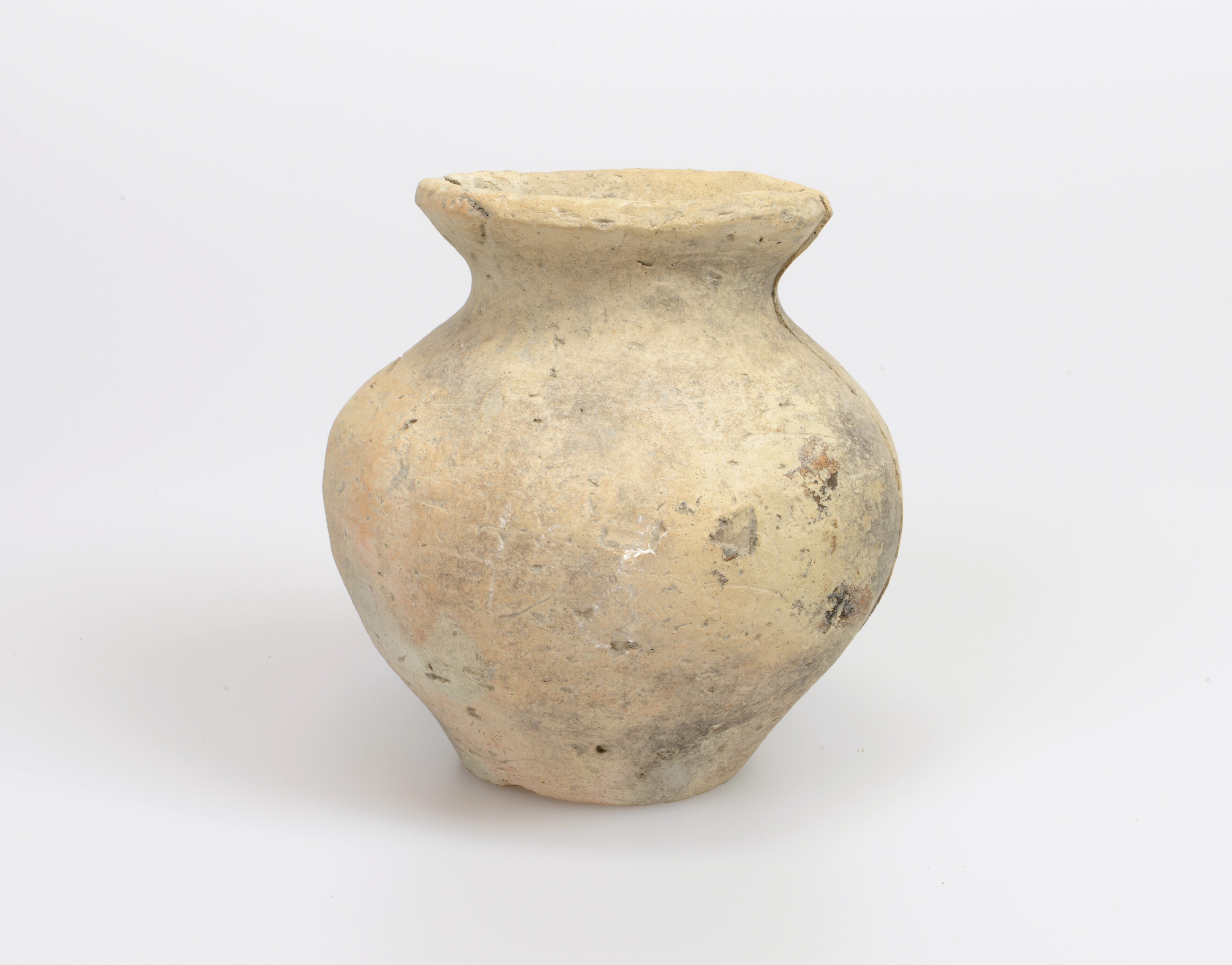 Pot; inheems-Romeins aardewerk; handgevormd; wijdmondige pot met s-vormig profiel; standvlak; schelpgruismagering; vondstgegevens: S1