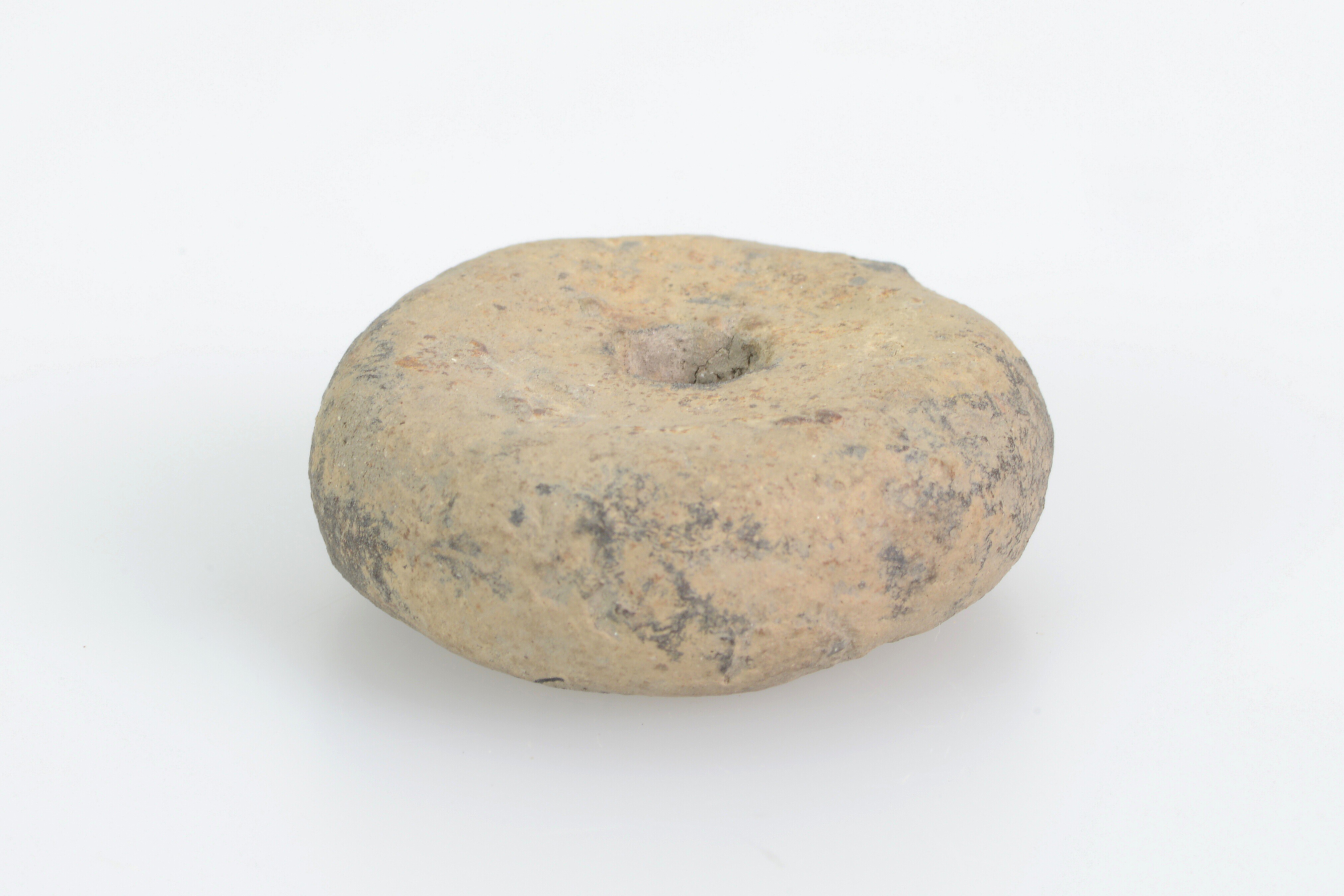 Spinsteen; ronde spinsteen met centrale doorboring; steengruismagering