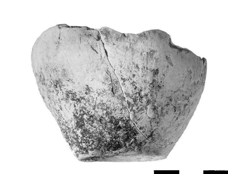 Miniatuur-potje; Hoogkarspel-Jong aardewerk; baksel DD (gladwandig); standvlak