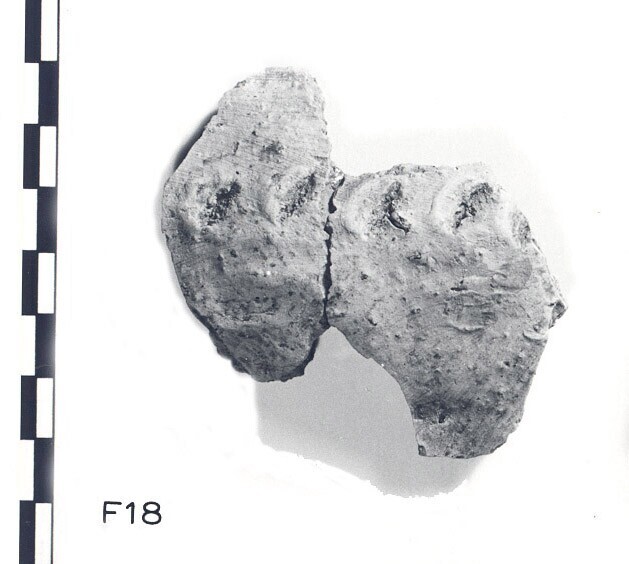 Pot; Hoogkarspel-Jong aardewerk; baksel DD (gladgestreken); wandfragment; één rij nagelindrukken; steengruismagering