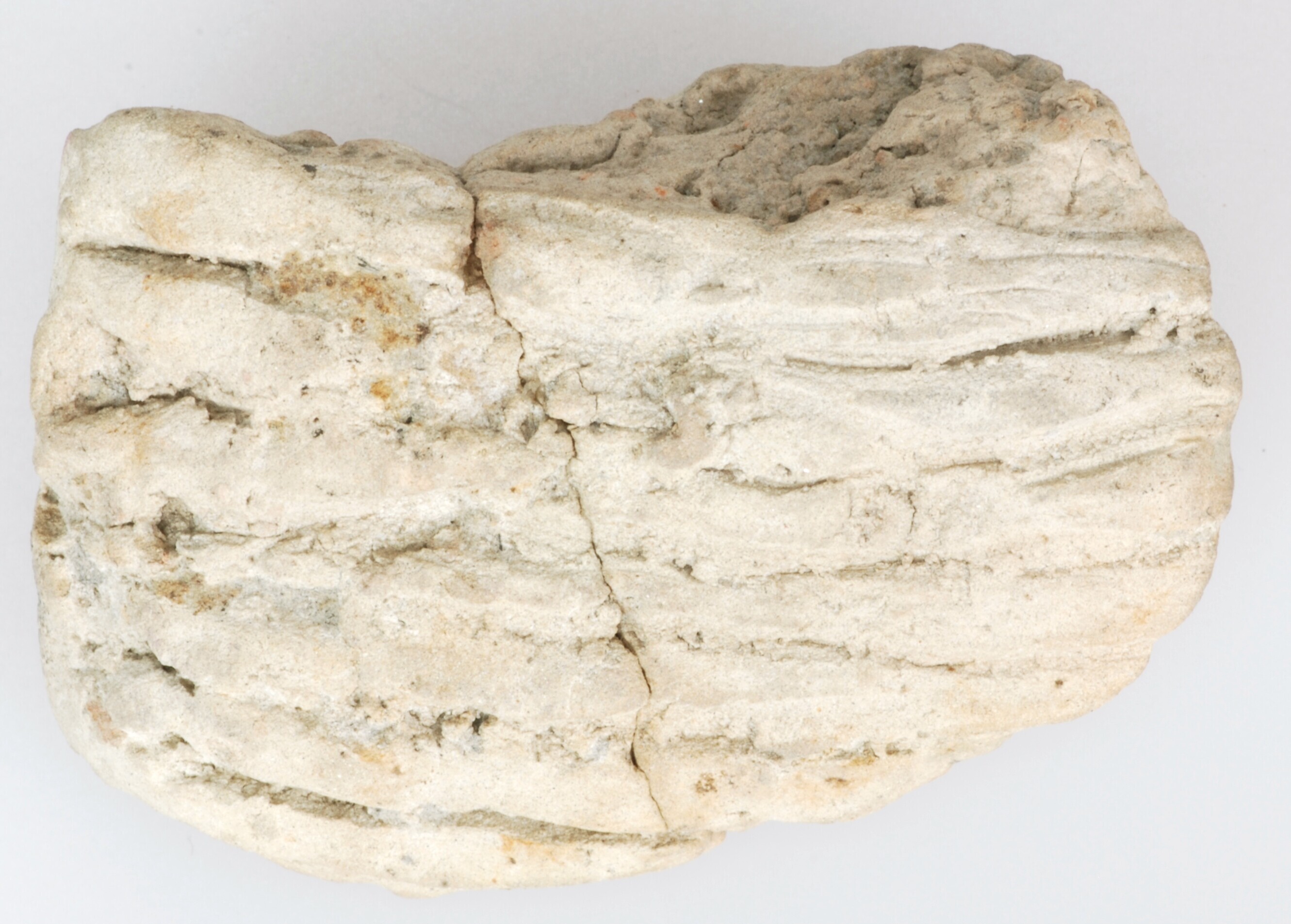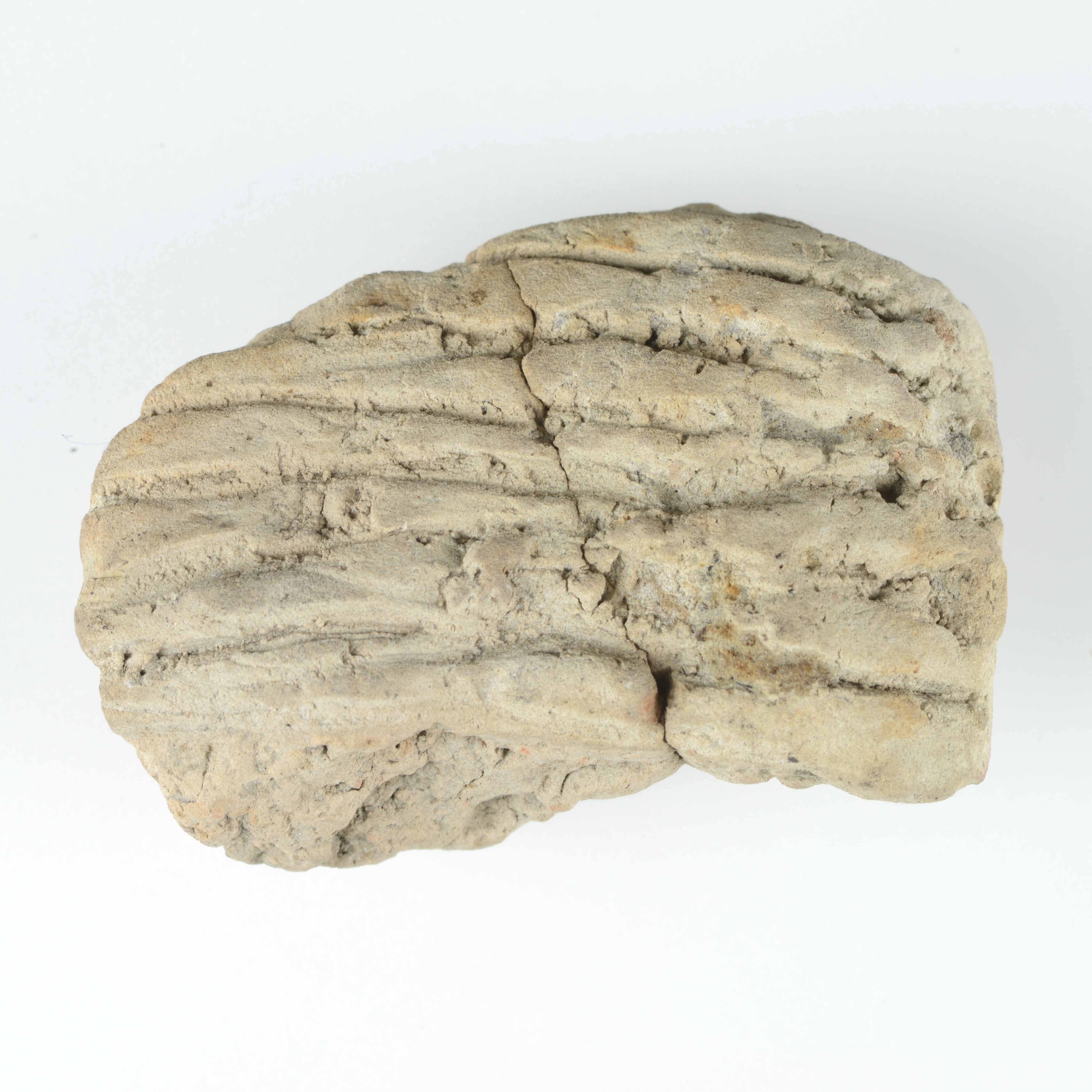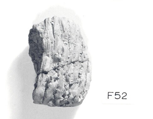 Conisch object (?); Hoogkarspel-Jong aardewerk; fragment met breed standvlak en centrale doorboring met op de wand verticale lijnversiering