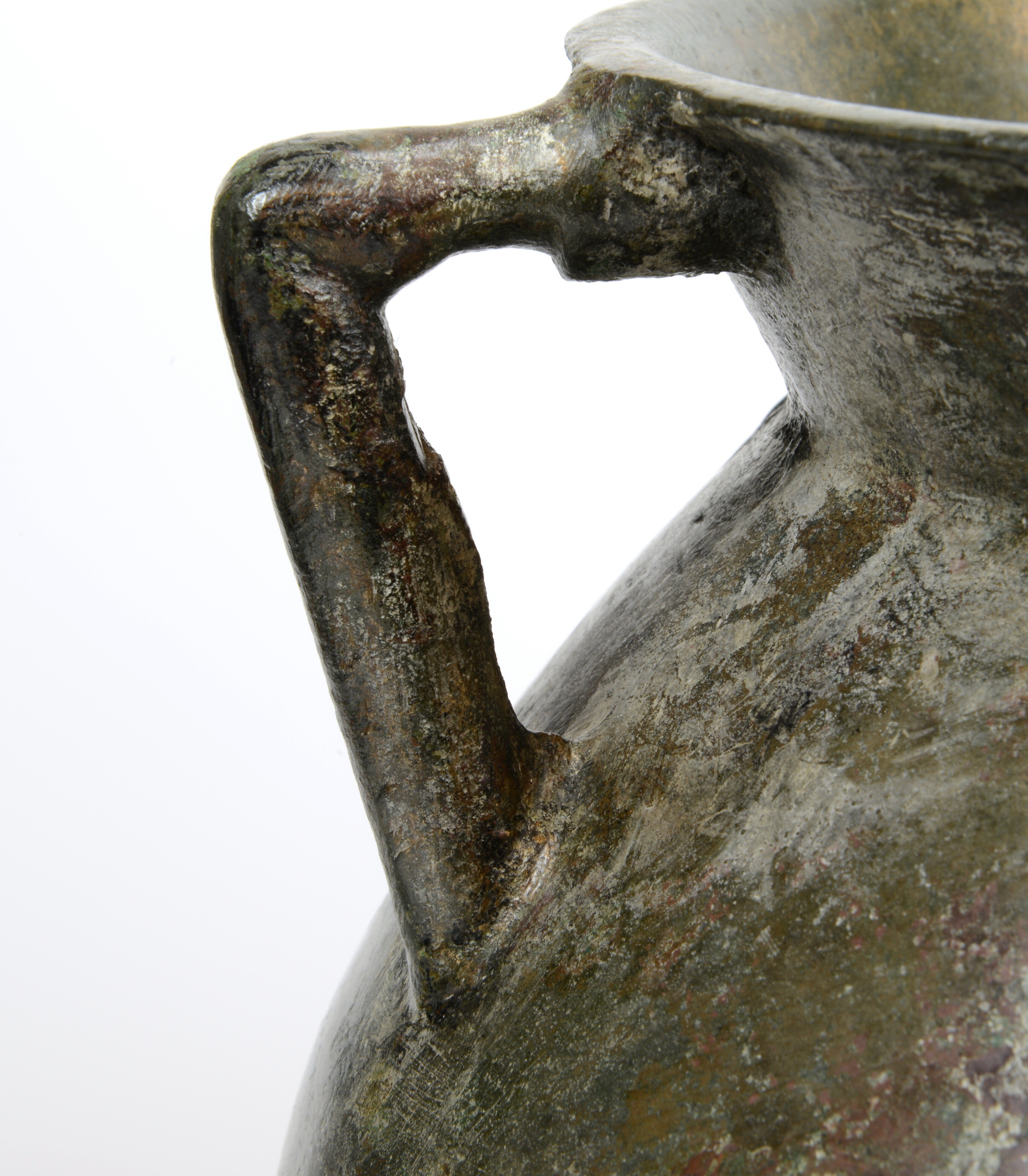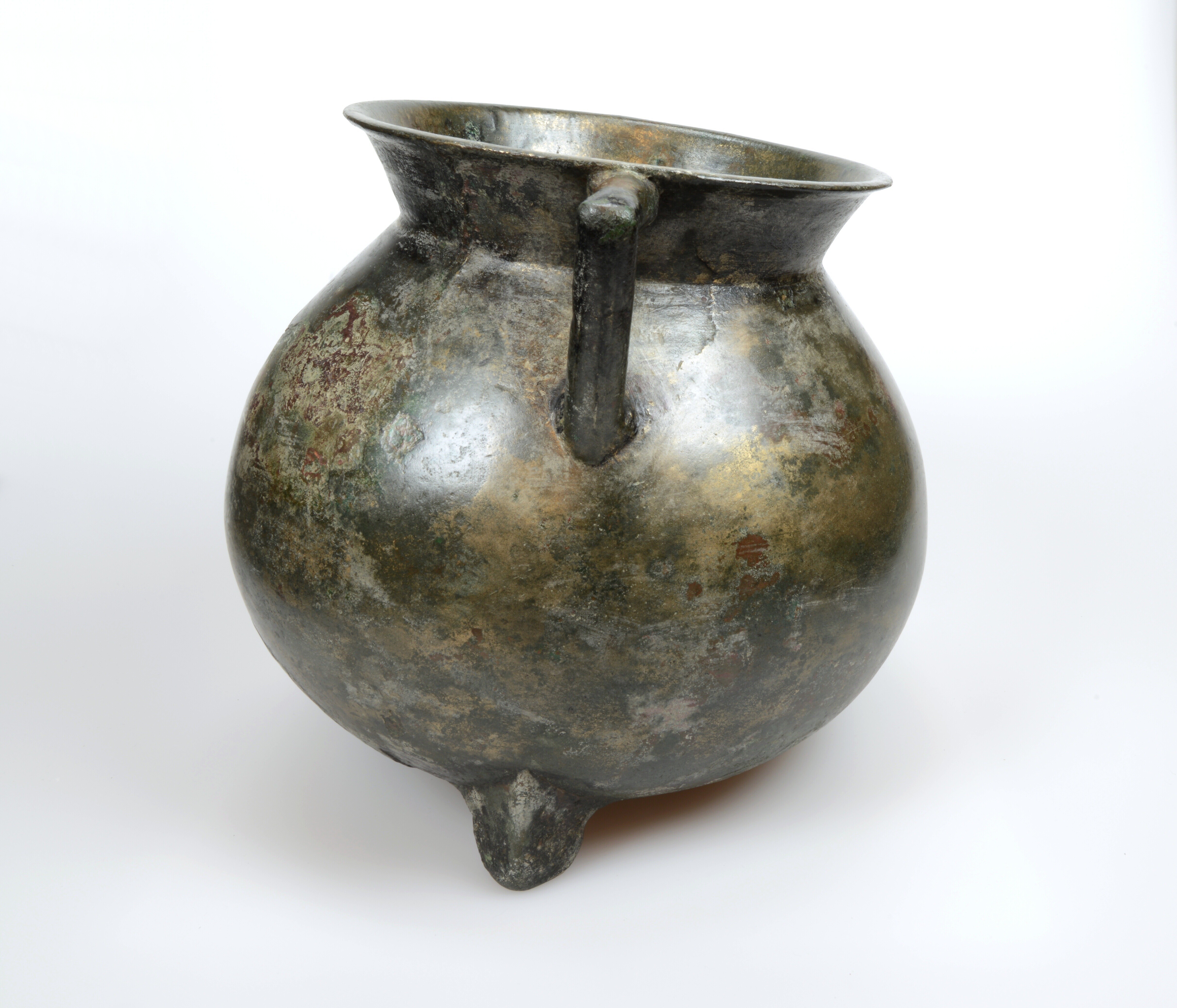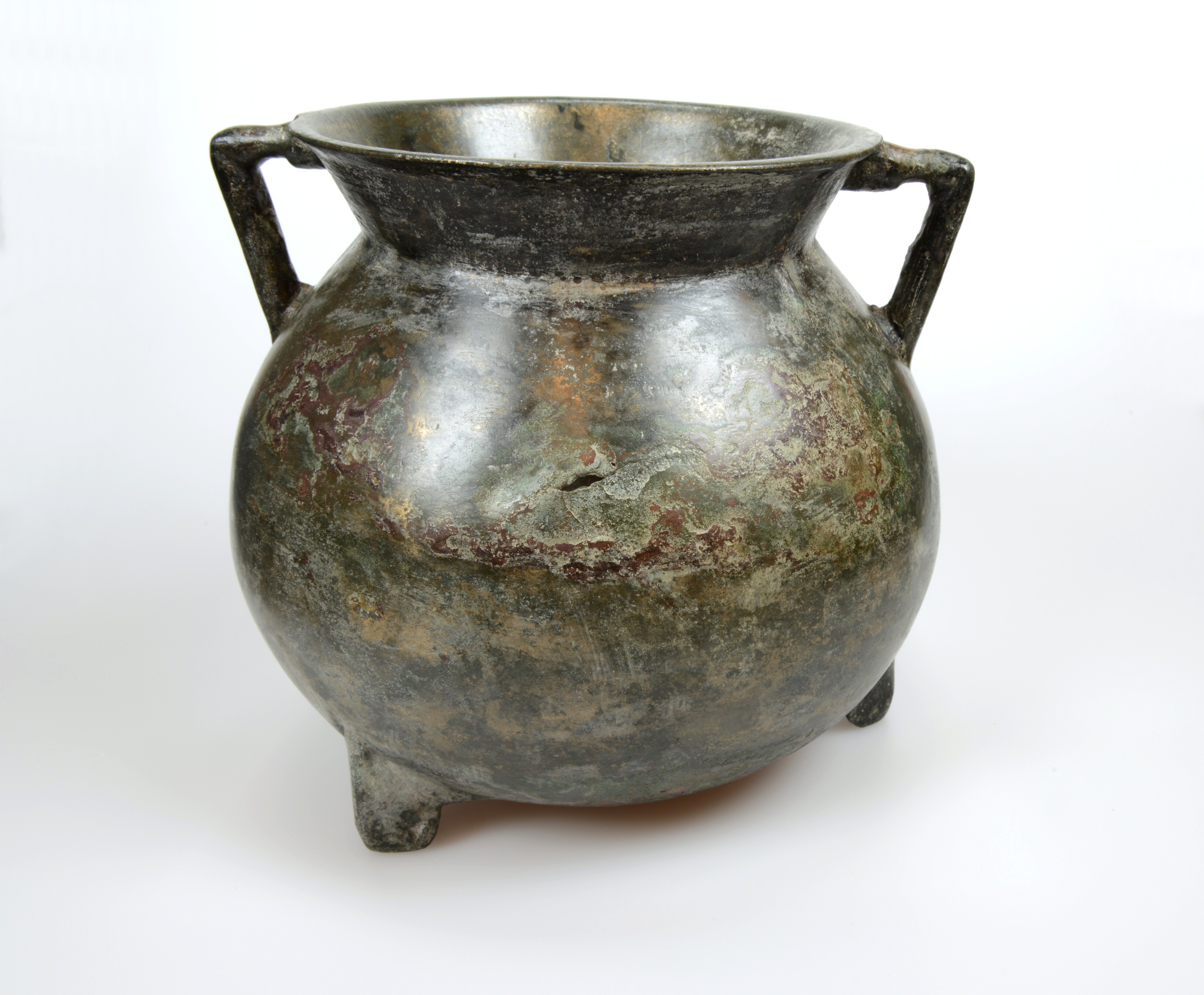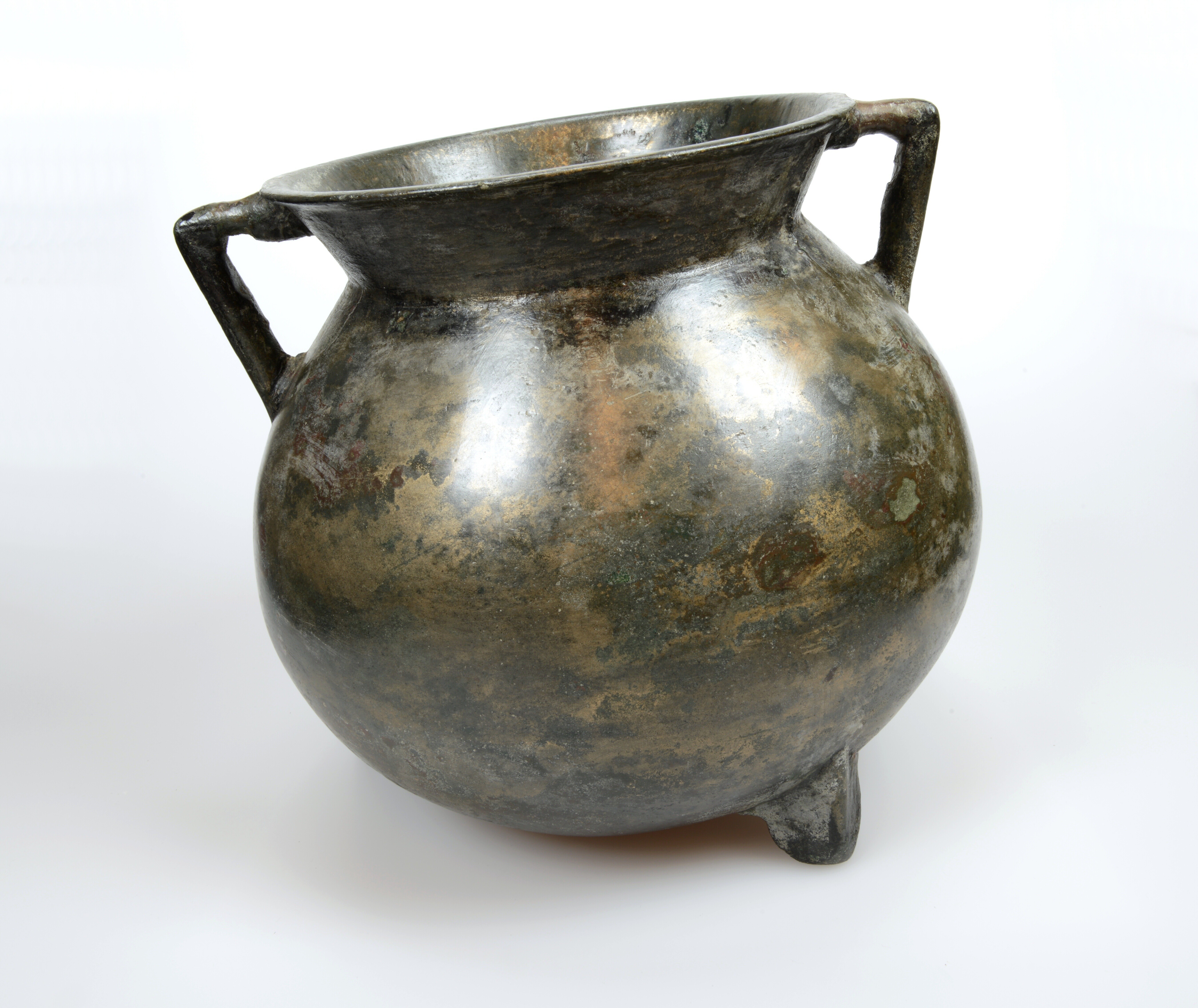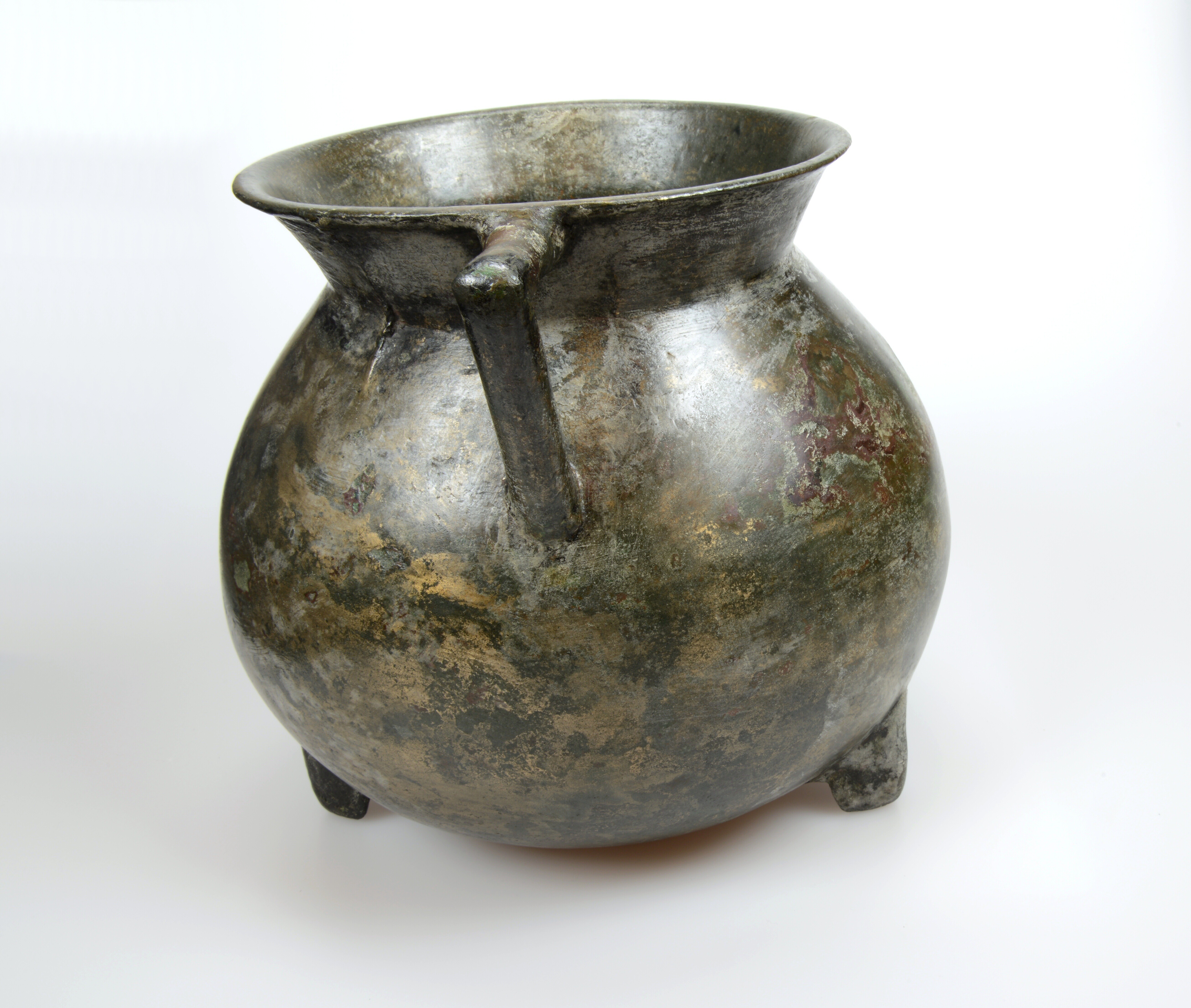Grape; kogelvormige romp waarbij de overgang van romp naar hals vloeiend verloopt en de liprand rond is. Twee haakoren en de grape staat op drie poten die in doorsnede driehoekig zijn