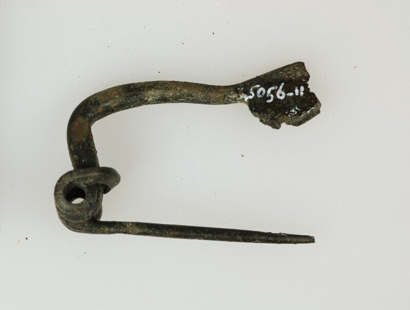 Draadfibula; onderdraadse fibula met vier windingen van de spiraal, een min of meer hoekig gebogen beugel en voet voorzien van een dichte naaldhouder